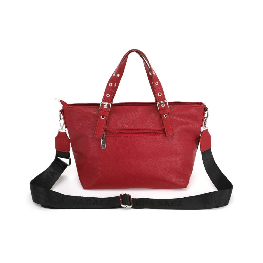 Dos asas superiores ajustables con tachas, que suman diseño y versatilidad.